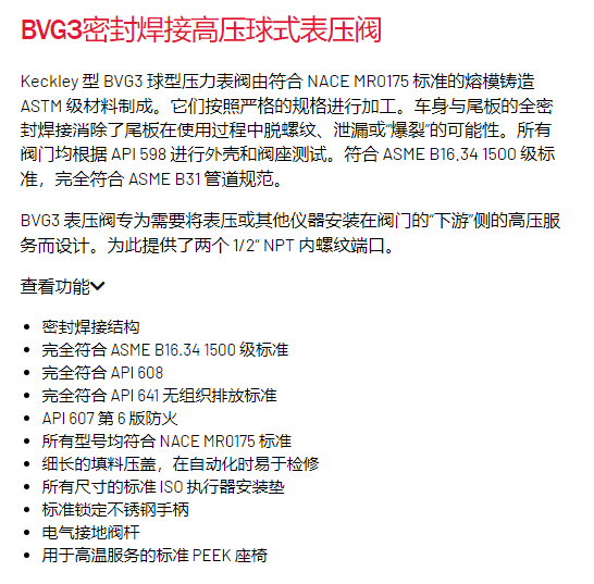 KECKLEY 密封焊接高压球式表压阀BVG3系列