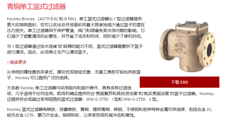 KECKLEY 青铜单工篮式过滤器系列